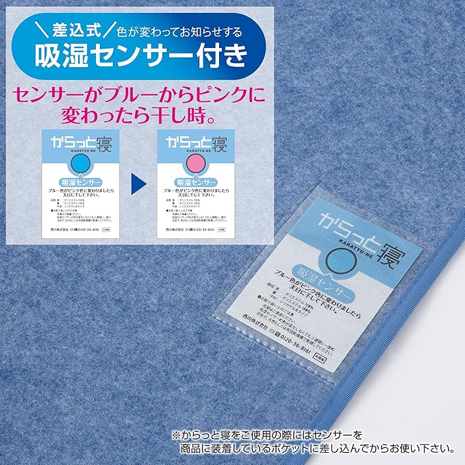 nishikawa 【 西川 】 からっと寝 敷くだけ簡単 寝具用除湿シート シングル ブルー 特殊シリカゲルが汗や湿気を吸収してさらっと快適 イヤな臭いも消臭 防ダニ 防カビ 吸湿センサー付き 布団用除湿マット 湿気取 防湿 207278805 | oioioichan