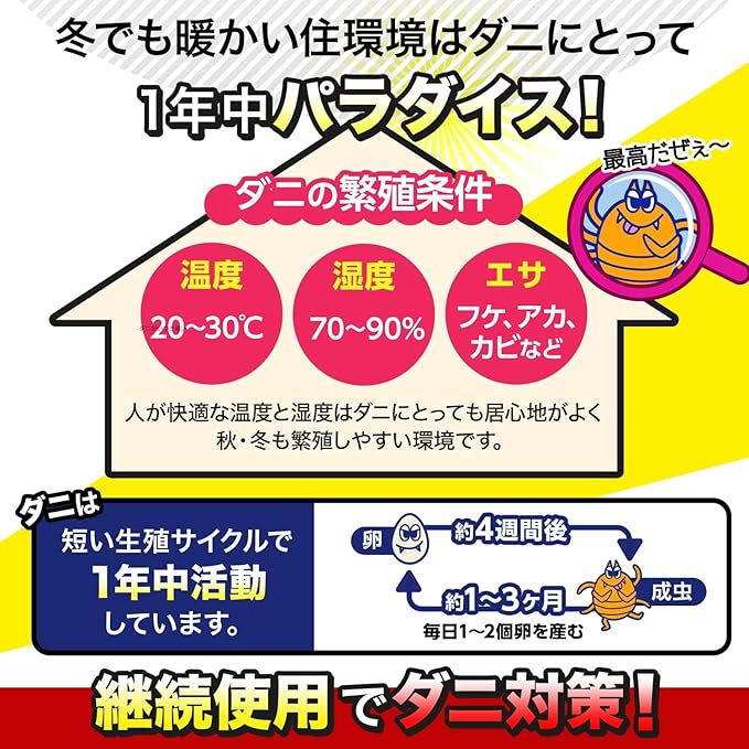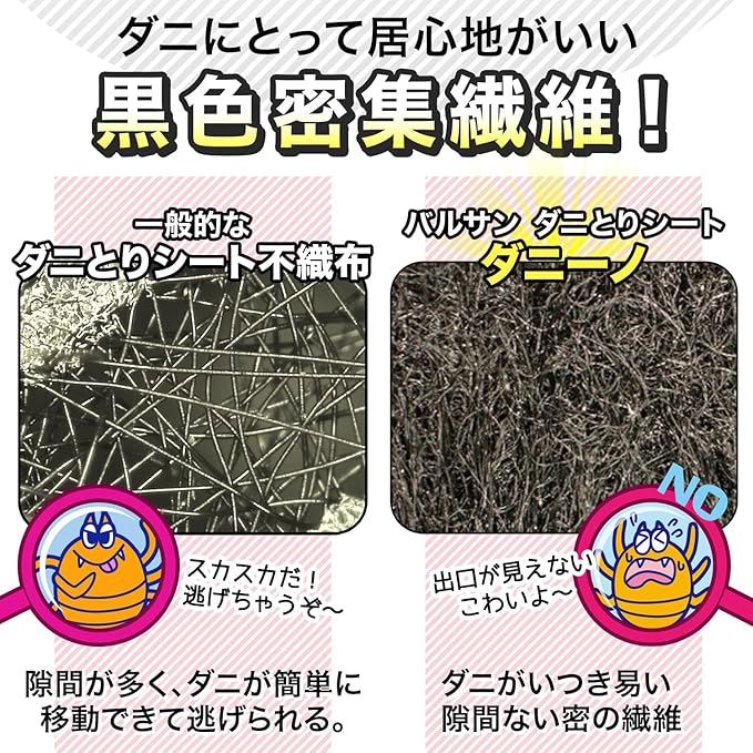 ダニが気になるところに置くだけ!フルーツの香りでダニを引き寄せ、シート内部の粘着シートでダニを捕獲!
