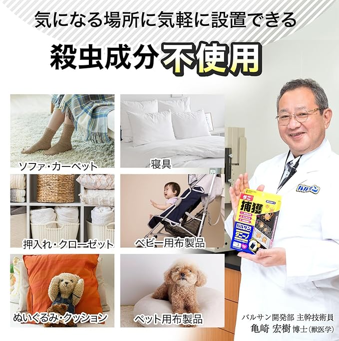 ジャマにならない薄型タイプ。殺虫成分は使用していないので、お子さまやペットのいる部屋にも。
