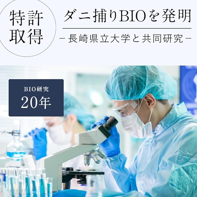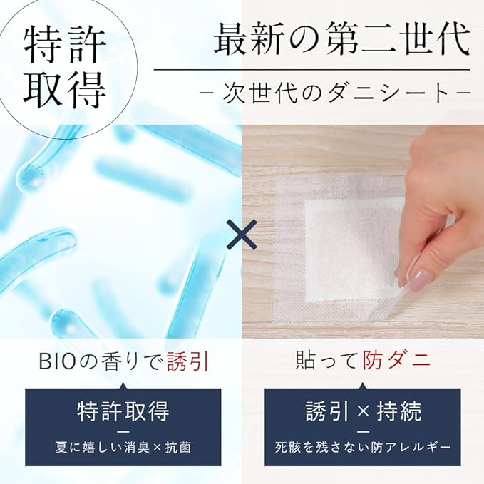 ✅【 特許取得 BIO成分 】特許第7614578号 。日本初「ダニの誘引だけではなく、カビの"抑制抗菌"&"消臭効果"を発揮する」BIOを開発! 人は一晩にコップ一杯分の「寝汗」をかき、それが"カビ"や"臭い"の原因となります。寝汗にBIOは効果抜群です。 ダニが増えるジメジメした暑い夏場でも安心♪ .