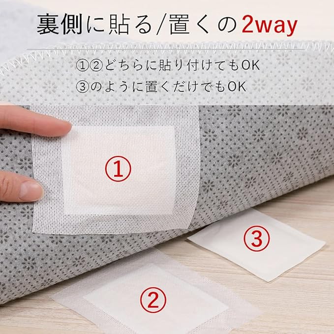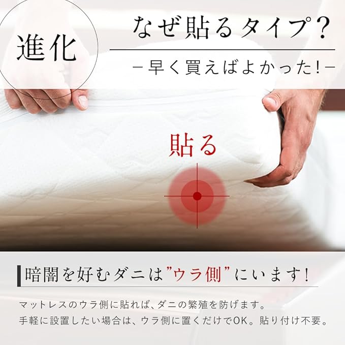 ✅【 買ってよかった!!貼るタイプ 】 暗闇を好むダニは布団の表側ではなく実は"裏側"に潜り込んでいます! 貼るタイプですと布団の裏側にペタッと貼れるので"効率的に誘い出し捕獲"できます。 布団には2~4カ所設置するのが最適です。1つ畳1枚分の範囲をカバーします。 .