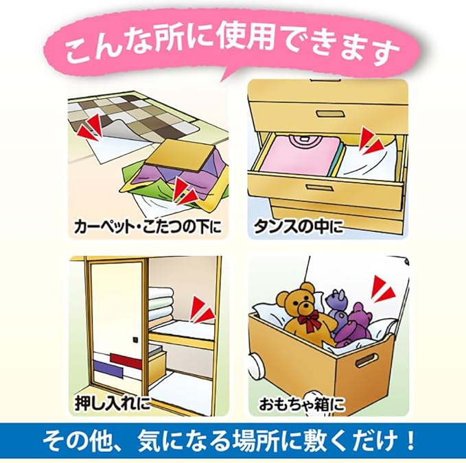 押し入れやベッドの下に敷くだけで、イヤな虫をよせつけにくい効果と防カビ効果を発揮。