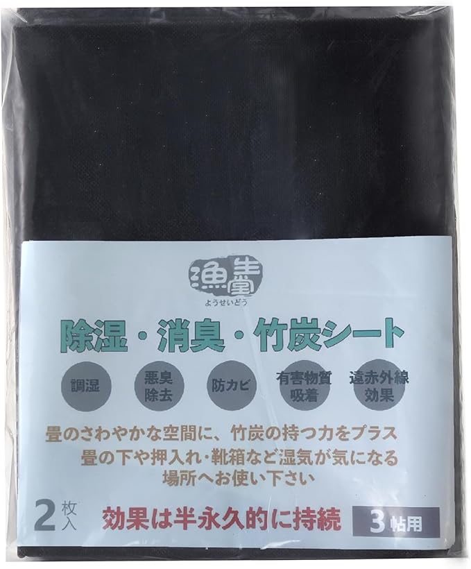漁生堂 除湿・消臭・竹炭シート 3帖用 活躍在引越しやDIYやリフォーム中に 畳の下や押入れ・ウッドカーペット・靴箱など湿気が気になる場所に (約100cm 280cm 2枚入り) | oioioichan