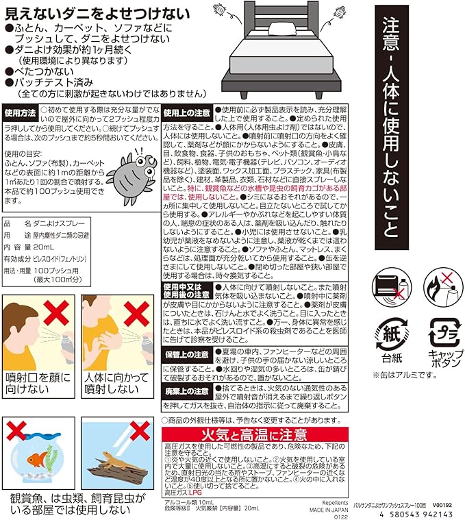 ワンプッシュで見えないダニをよせつけない!プッシュタイプもやっぱり信頼の「バルサン」!