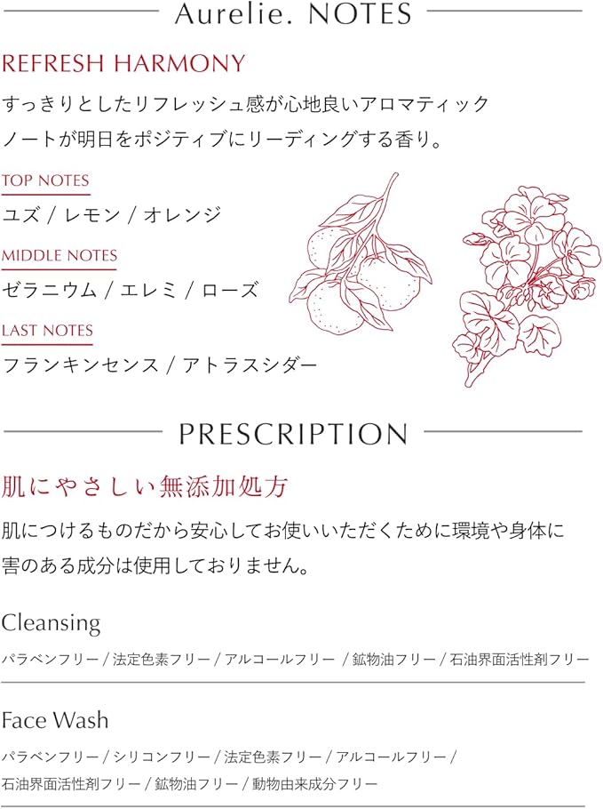 Aurelie. Note/REFRESH HARMONY:すっきりとしたリフレッシュ感が心地良いアロマティックノートが明日をポジティブにリーディングする香り。
