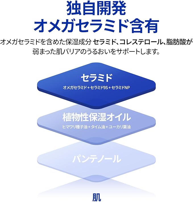 MLE技術でうるおいをキープ|肌構造に着目したMLE処方のトリプルセラミドがうるおいを逃さず、乾燥しやすい肌をやさしく包み込みます。