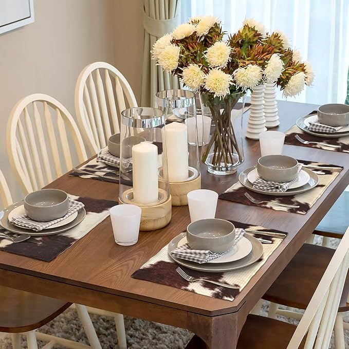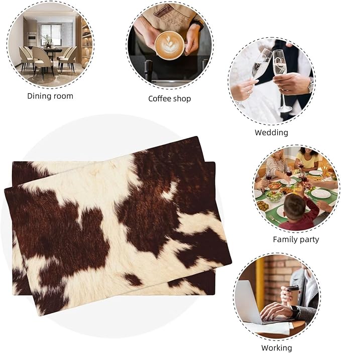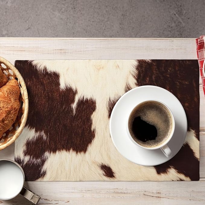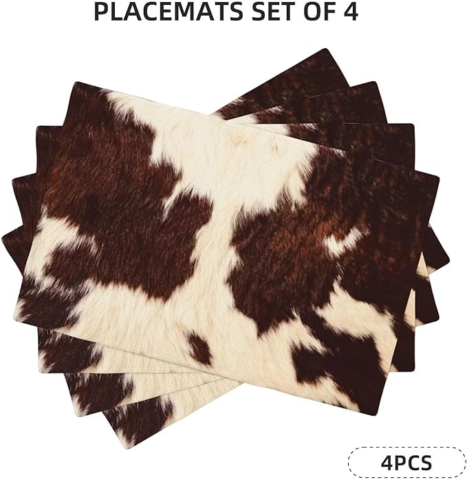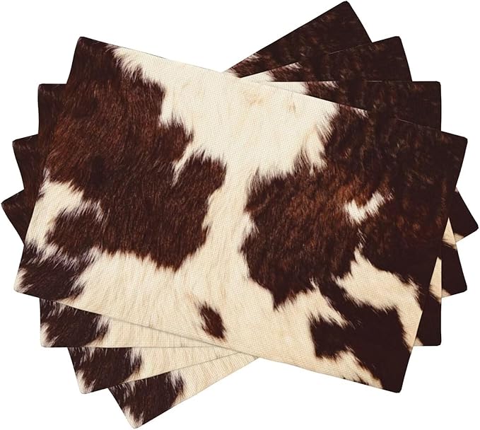 カウハイドテーブルプレースマット4枚セット ウエスタンファーム 3Dアニマルファースキン ブラウン カウプリン 屋内 屋外 テーブルプレースマット ホリデーバンケット キッチンテーブル装飾用