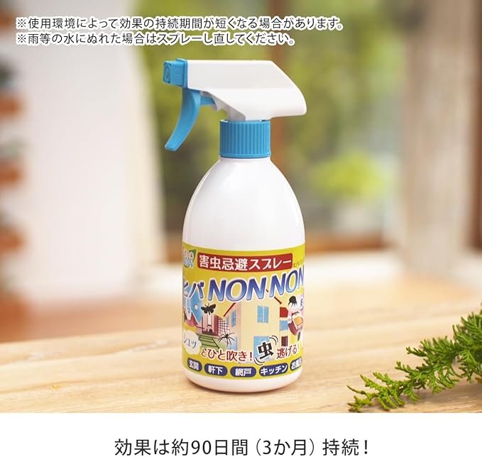 ヒバNON NONは天然の「ヒバ・ヒノキ・クスノキ・ヤシ・除虫菊」のエキスで作られているので比較的、安全性の高い防虫忌避剤です。