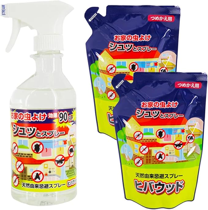 成分: ヒノキオイル、オレイン酸、テルペン油・除虫菊エキス、水 気になる場所にシュッとスプレーするだけで虫をシャットアウト! ヒバウッドは天然由来成分で作られています。 人に優しく、虫に効く! 玄関、軒下、外壁、網戸、窓ガラス、キッチン、お風呂、畳、布団、衣類、カーペット、ソファーなどに。これ1本で家中まるごと虫ガード!服にかければアウトドアでの虫よけに!効果持続は約90日!