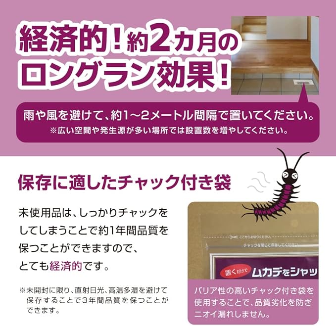 ムカデをシャットアウト!約2か月のロングラン効果で経済的!大人気ムカデの忌避剤。