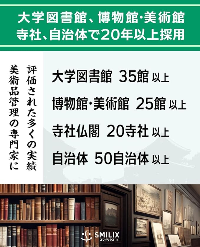 【特徴②】美術品管理専門家から多数の採用実績。女性司書や女性学芸員が在職される施設を含めた大学図書館、博物館、美術館、寺社仏閣、自治体、着物・高級アパレル専門店などの美術品管理専門家から20年以上継続して採用されています。
