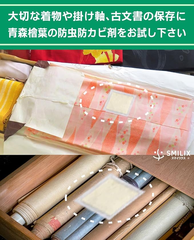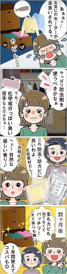 【用 途】衣類や紙類の防虫剤。着物、洋服、掛け軸、古書などタンスの引き出しや、衣装ケース内の防虫・防カビ対策に