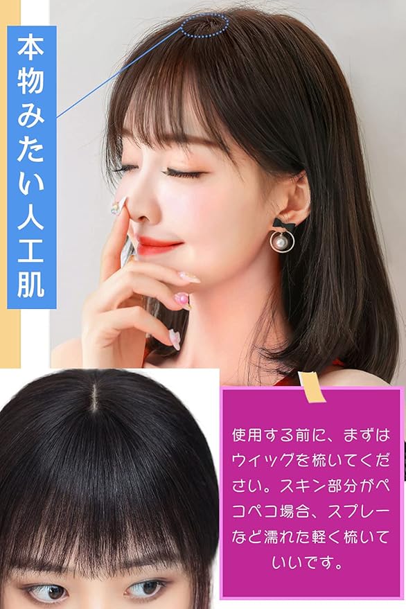 素材の特徴 近くで見で毛ウィッグとわからない 通気性UP!柔らかなネットだから 一日中も疲れません~ リアル人工皮膚と100%で 自然に仕上がり、更に自然さを求める方に