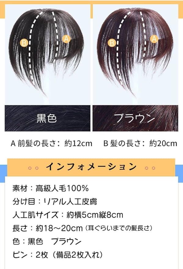 HIYE 部分ウィッグ トップ専用ウィッグ 前髪 100% 女性 用 部分 カツラ ヘアピース かつら 総手植えリアル地肌ネット 白髪隠れ 薄毛 トップカバー 前髪カット済み (前髪新横5cm縦8cm 黒) | oioioichan
