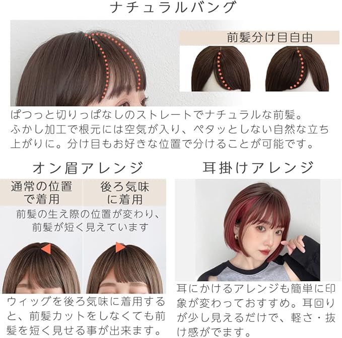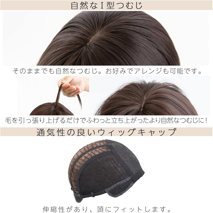 仕様:人工頭皮あり:I型つむじ 前髪分け目自由 金属不使用 可能 ドライヤー、コテ、アイロン等で好みの髪型に整えることができます。「耐熱温度最大180度」
