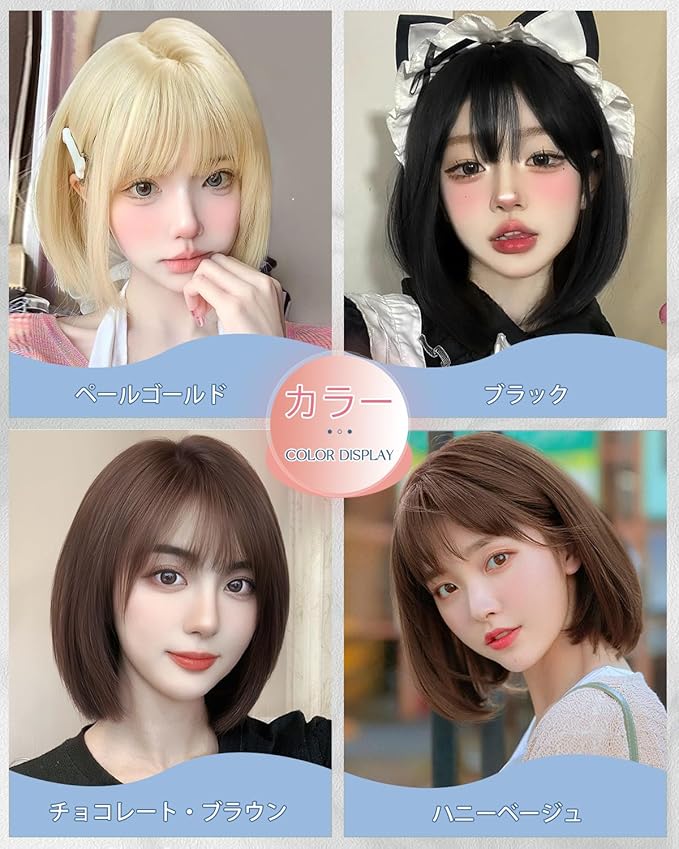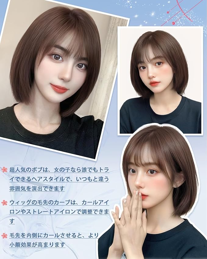 ☀【キュートなシンプルボブ】ボブのヘアスタイルは、顔を美しく見せ、特徴を強調し、女性のエレガンスと優雅さをアピールする古典的なショートヘアスタイルであります。このヘアスタイルはシンプルでスタイリッシュであり、多くの女性の日常的なニーズに非常にマッチしています。ロングヘアや他の複雑なヘアスタイルに比べて、ボブは扱いやすいです。手入れに手間も時間もかからず、簡単に整えるだけで元の美しさを保つことができます。忙しい現代女性にとって、これはとてもありがたいことです。