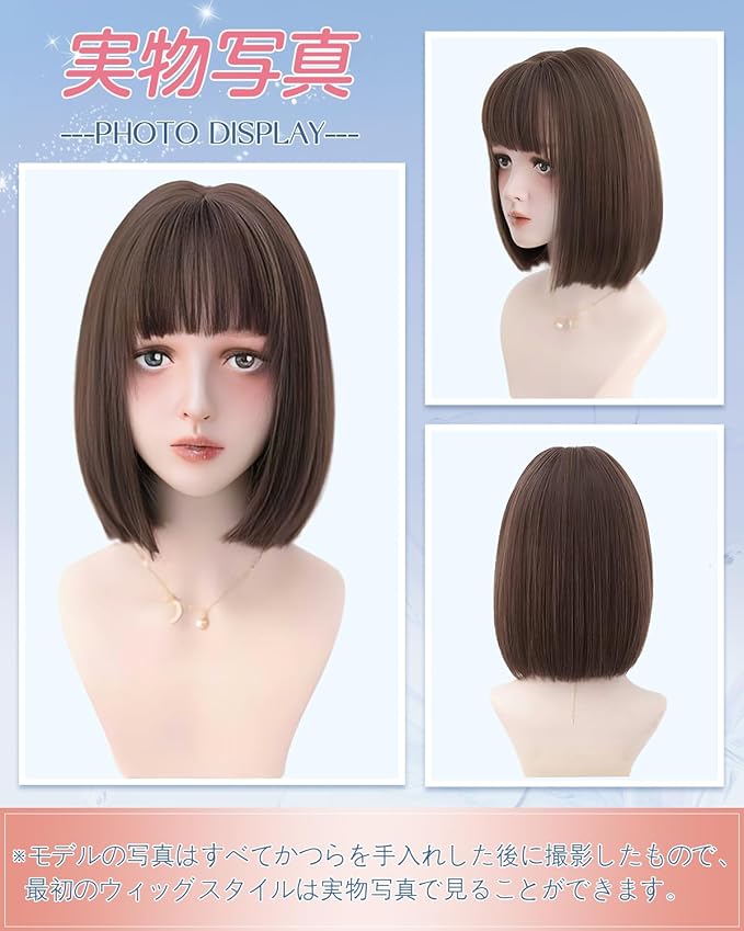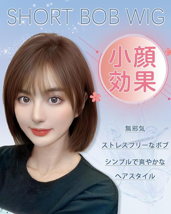 Sofeiyan ウィッグ ボブ ショート ストレート ウィッグ 普段使い フルウィッグ かつら 自然 小顔 レディース 女性 女装 耐熱 wig ウィッグネット付 (・ブラウン) | oioioichan