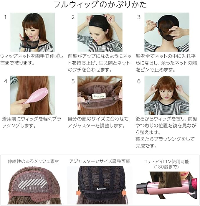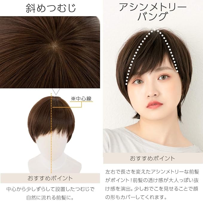 仕様:人工頭皮あり(斜めつむじ) 前髪分け目自由 金属不使用 ドライヤー、コテ、アイロン等で好みの髪型に整えることができます。「耐熱温度最大180度」