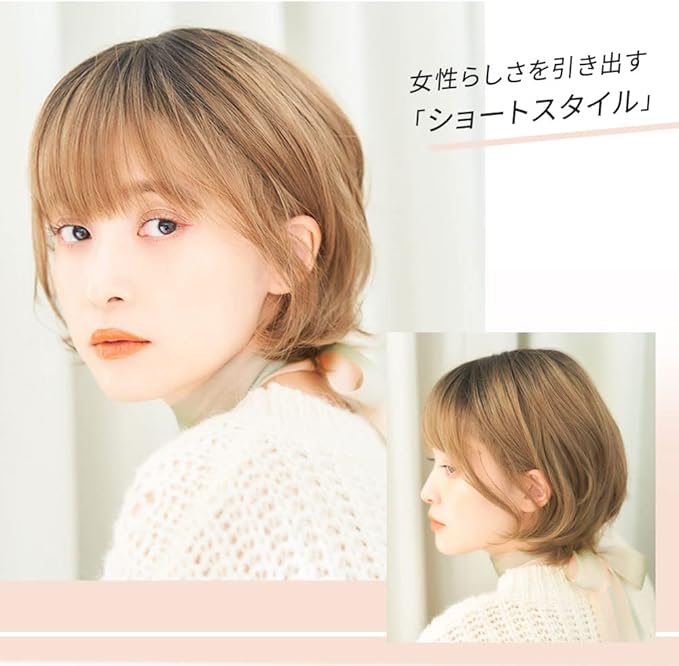 用フルウィッグ 5カラー Mサイズ 『 ラテショート 』ショート ボブ 【 細かいMIXカール 自然なつむじ シースルーバング ふかし加工 フィット感 ひし形シルエット 】 レディース 【 リネアストリア 】(チャイティーラテプリン) | oioioichan