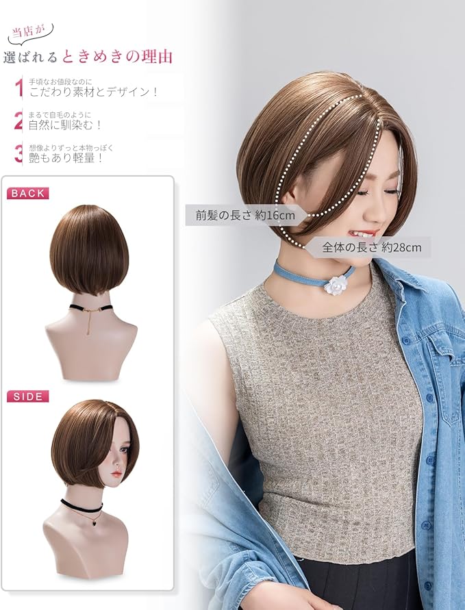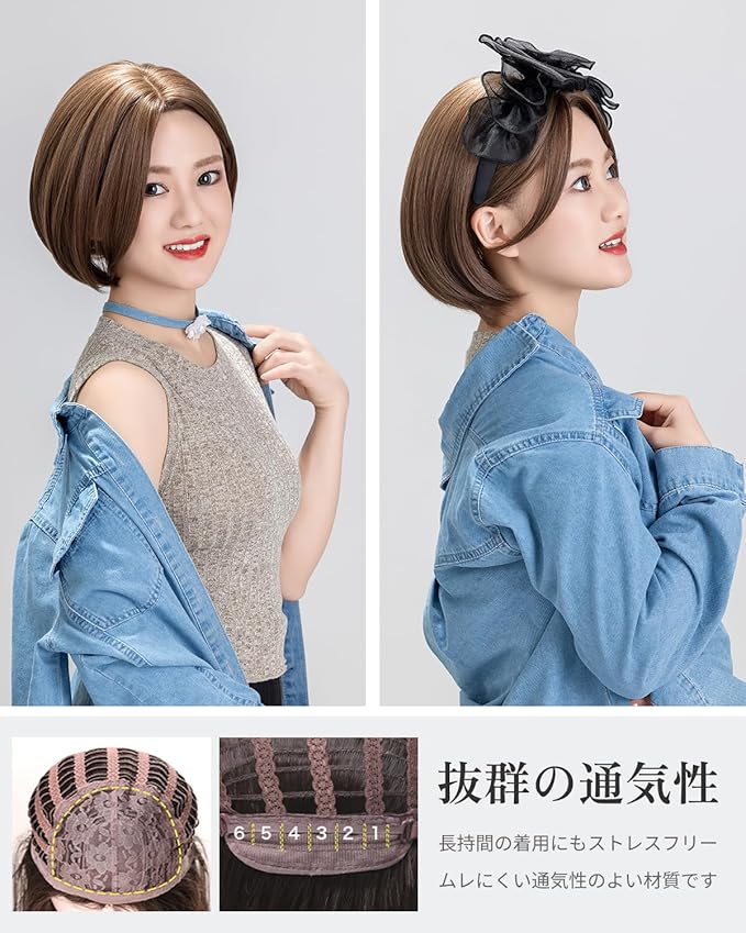✅ 軽量 & 通気性抜群:蒸れにくい、長時間着用も快適。薄い髪を自然な流れで配置し、頭皮への負担を軽減!