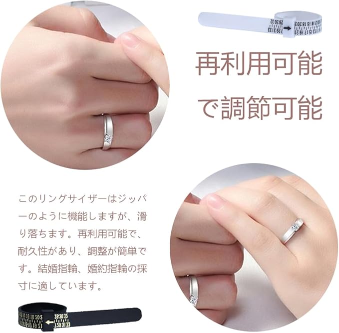 【再利用可能で調節可能】このリングサイザーはジッパーのように機能しますが、滑り落ちます。再利用可能で、耐久性があり、調整が簡単です。結婚指輪、婚約指輪の採寸に適しています。