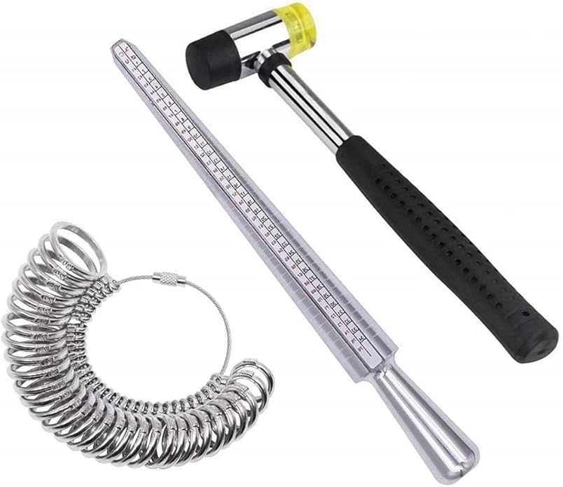 日本規格リングサイズ3点セット 指輪サイズゲージ リングゲージ リング棒 ハンマー まで対応 日本標準規格 指輪 サイズ 調整 プロ仕様 指輪測定用 補修ツール ジュエリー用 工具 道具 (リング定規セット) | oioioichan