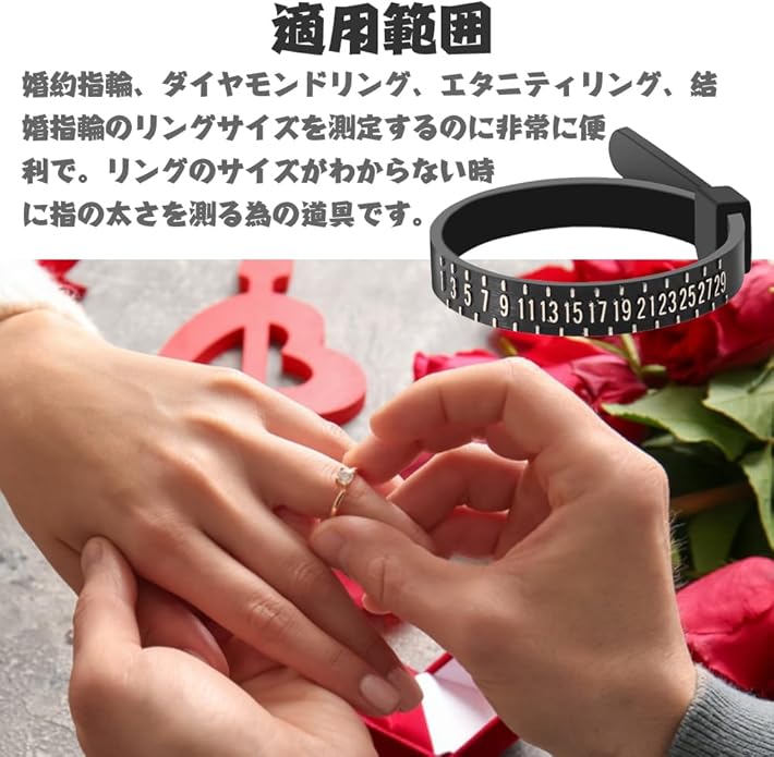 機能:婚約指輪、ダイヤモンドリング、エタニティリング、結婚指輪のリングサイズを測定するのに非常に便利で。リングのサイズがわからない時に指の太さを測る為の道具です。