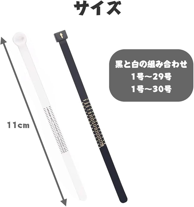 パッケージ内容:リングゲージバンド2本 黒と白の組み合わせ(1号~29号、1号~30号)。
