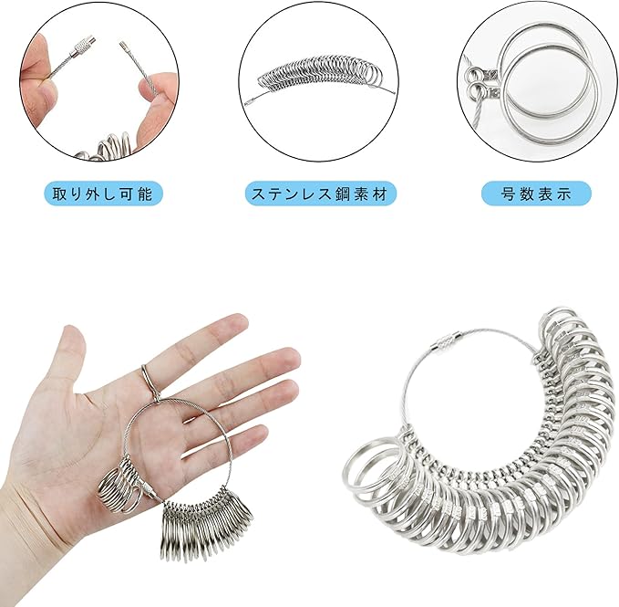 特徴:ゴム材料はあなたのアイテムへの損傷を減らすことができ、ステンレス製のリングバンドは耐久性があり、使いやすいです。 自宅で簡単にリングサイズを測定することができます。
