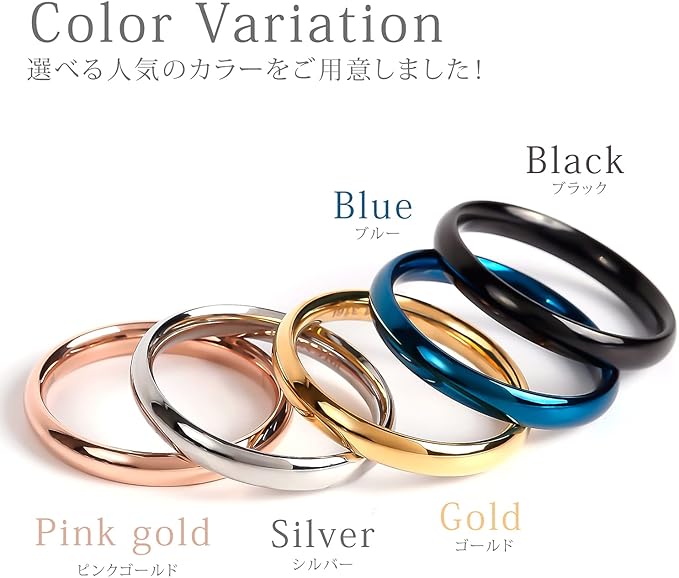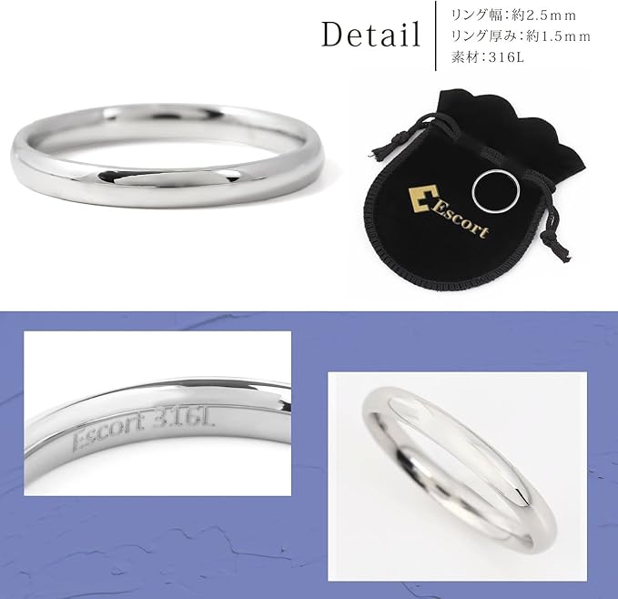 ・商品仕様:2014年9月から販売開始・各種カラー ・素材:サージカルステンレス(316L)・リング幅:約2.5mm リング厚み:約1.5mm ・専用の巾着が付いております。