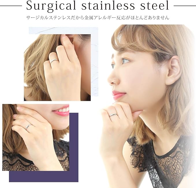 ・サージカルステンレスは、黒く変色してしまうこともありませんので、温泉や海水浴など、空気による変色や水分に気を使う必要の無いため、スタンダード、ペアリング、ピンキーリング、プレゼント、婚約指輪、結婚指輪、ファッションリング、ダミーリング、代替え用リングとして、使用場所を選ばないシンプルなリングです。