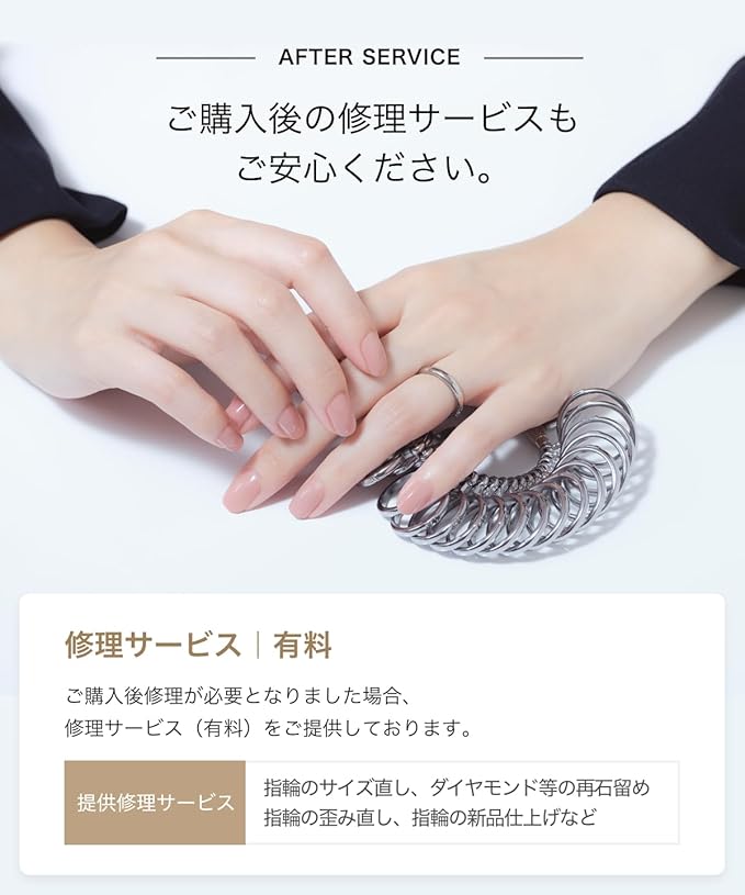 こちらのリングは「縮め:-2号まで/伸ばし+2号まで」サイズ直し可能です。