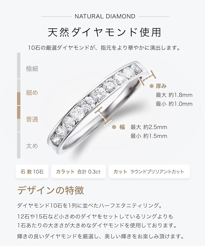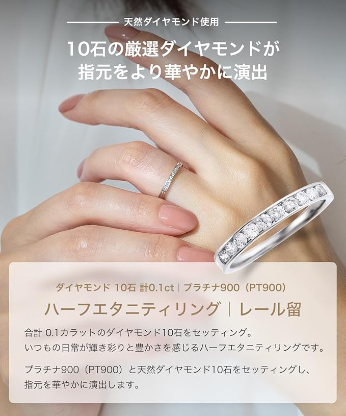 LEGAN (レガン) ハーフ エタニティリング プラチナ ダイヤモンド 10石 0.3ct レール留 天然ダイヤモンド PT900 指輪 婚約指輪 マリッジリング レディース 日本国内製