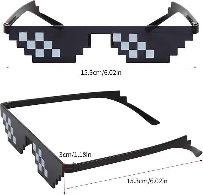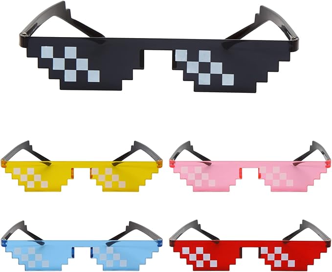 パッケージ内容:6ピクセルサングラス 5本。黒、黄、赤、青、ピンク、各色1本。