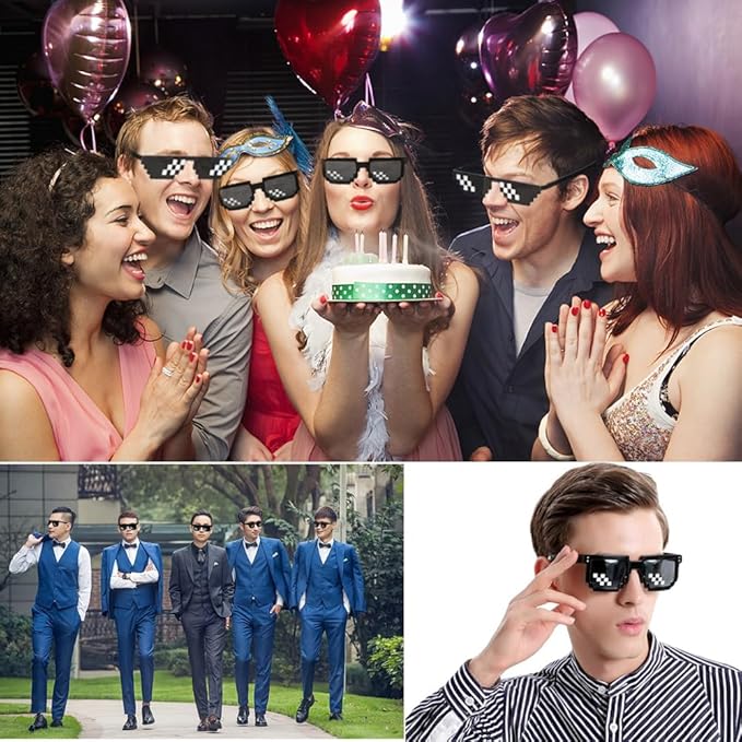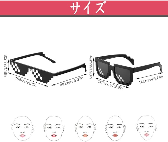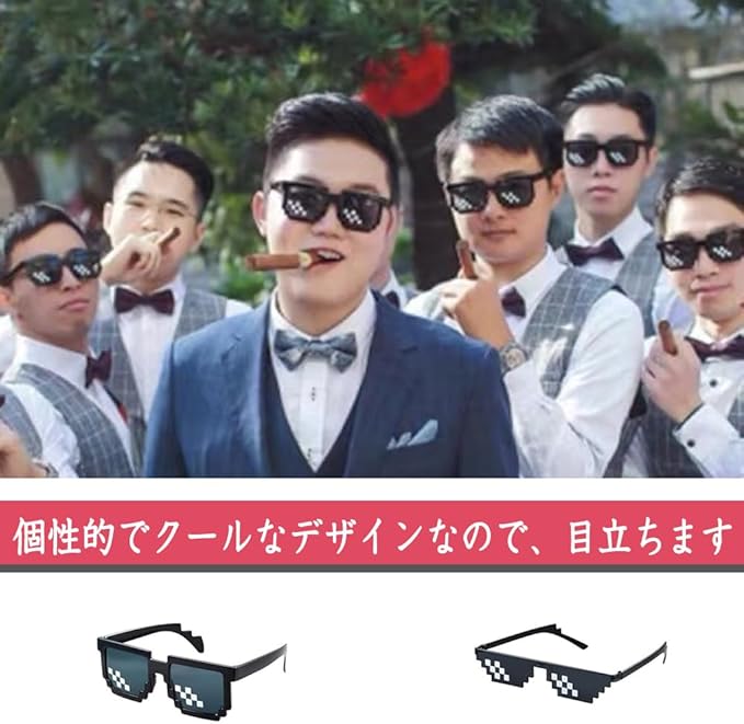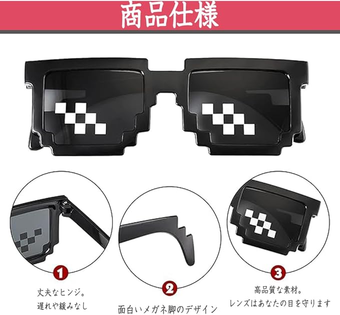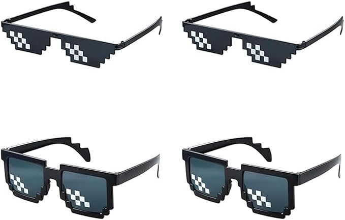 2. 商品詳細:4点セットには、ピクセル無框眼鏡2本と、ピクセルフレーム付き眼鏡2本が含まれています。ユニークでクールなデザインがあなたを注目の的にし、目立つこと間違いなし。