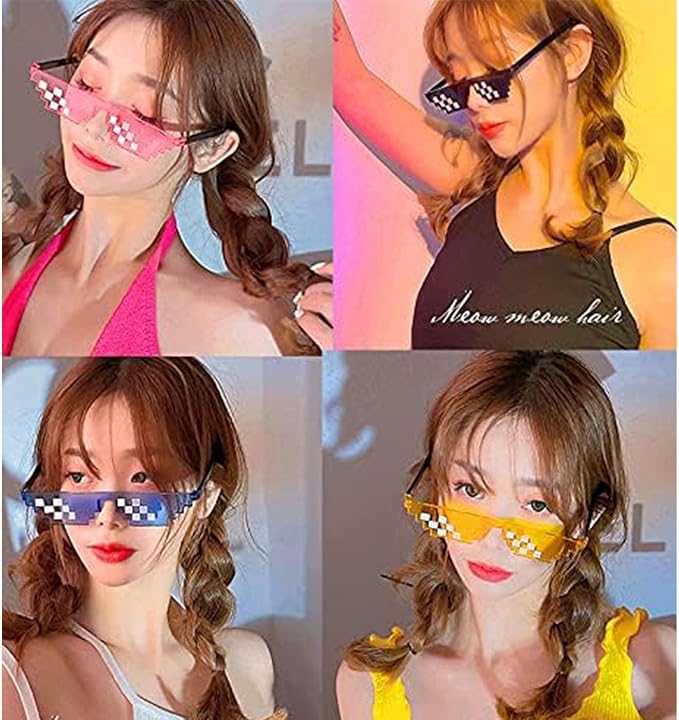 [Mirhua] サングラス パーティ モザイクサングラス 鼻パッド付き パーティーグラス 男女兼用 面白いおもちゃ ピクセルメガネ 装飾用 5個, ブラック、レッド、ブルー、ピンク、イエロー。 | oioioichan