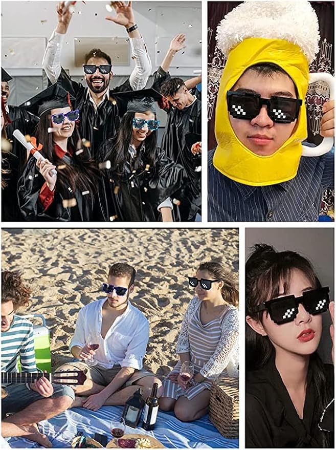 これらの楽しいピクセル化されたメガネは、ゲーマーへの贈り物です。 もちろん、お友達が誕生日を迎えたり、さまざまなパーティーに参加したりする場合は、それらを身に着けることで、より良い雰囲気を作り出すこともできます。