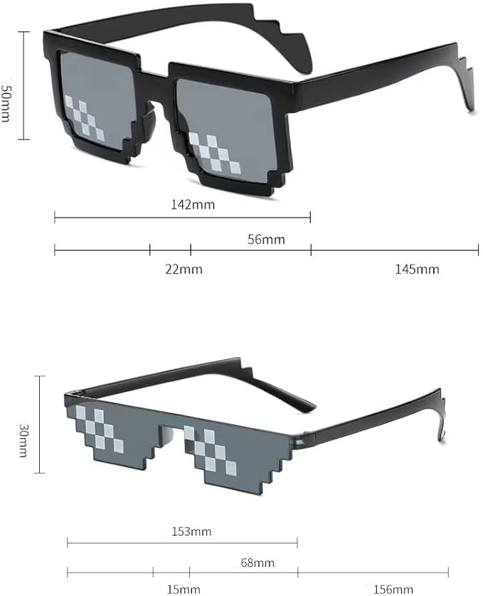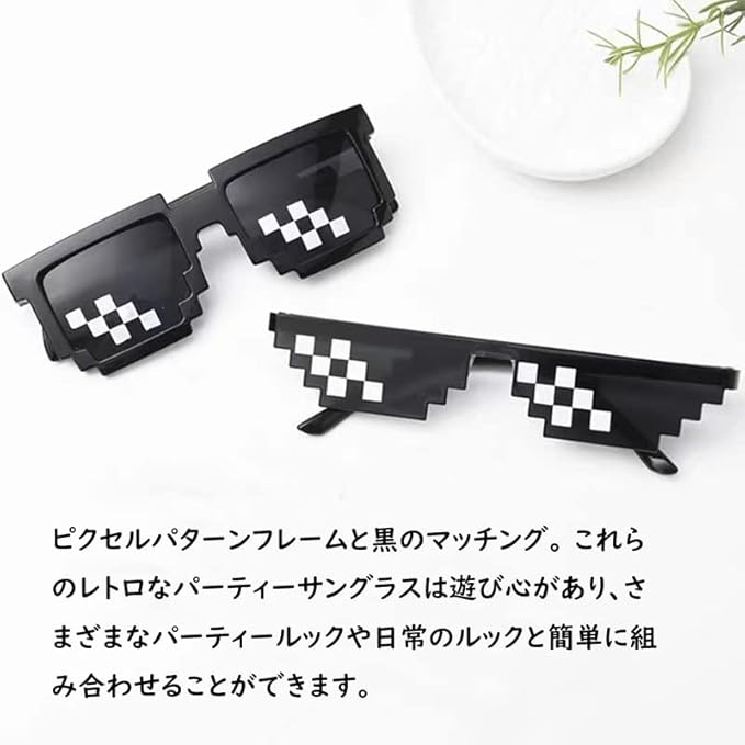 ピクセルパターンフレームと黒のマッチング。 これらのレトロなパーティーサングラスは遊び心があり、さまざまなパーティールックや日常のルックと簡単に組み合わせることができます。