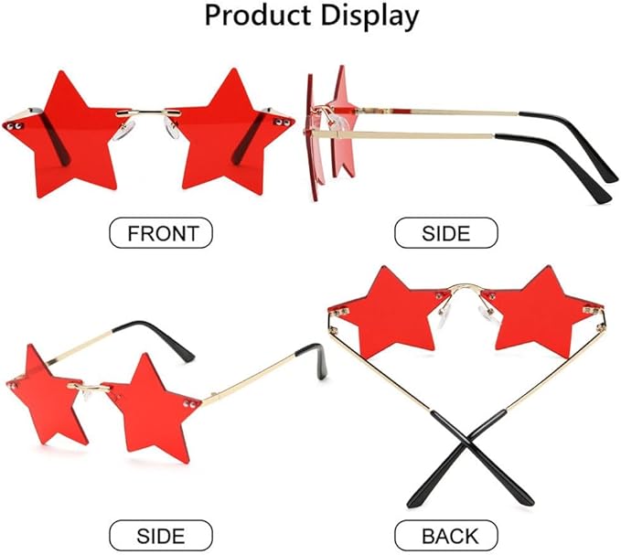 1. ファッショナブルで多用途: 星型のフレームレスサングラスは、男性にも女性にも最適なアクセサリーです。パーティーウェアや日常の装いに優雅さとユニークさを加えます。