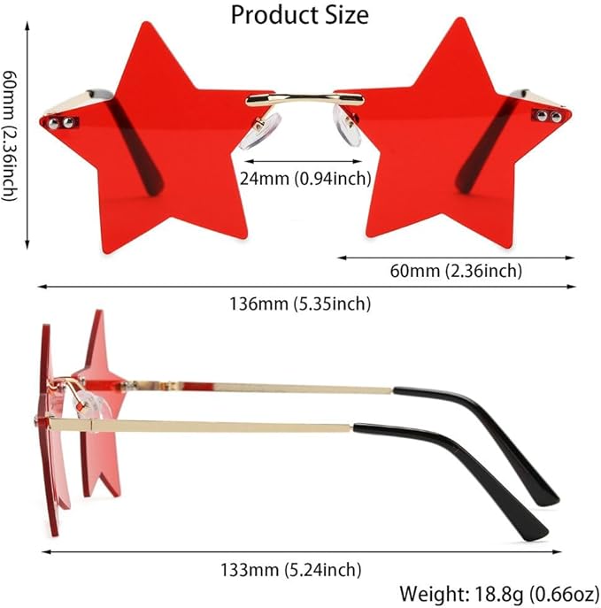 5. プレミアム品質と快適さ: 当社のメガネは高品質の素材で作られており、耐久性と長期使用を.します。フレームレスのデザインにより、軽量感があり、一日中快適です。当社のスタイリッシュなサングラスセレクションで、スタイル、品質、快適さをお楽しみください。 リムレススターサングラスのご紹介です。これは男性にも女性にも最適な究極のパーティーアクセサリーです。 Pentagram Eyewear メガネは、そのユニークで人目を引くデザインで、どんなイベントでも注目を集めるでしょう。