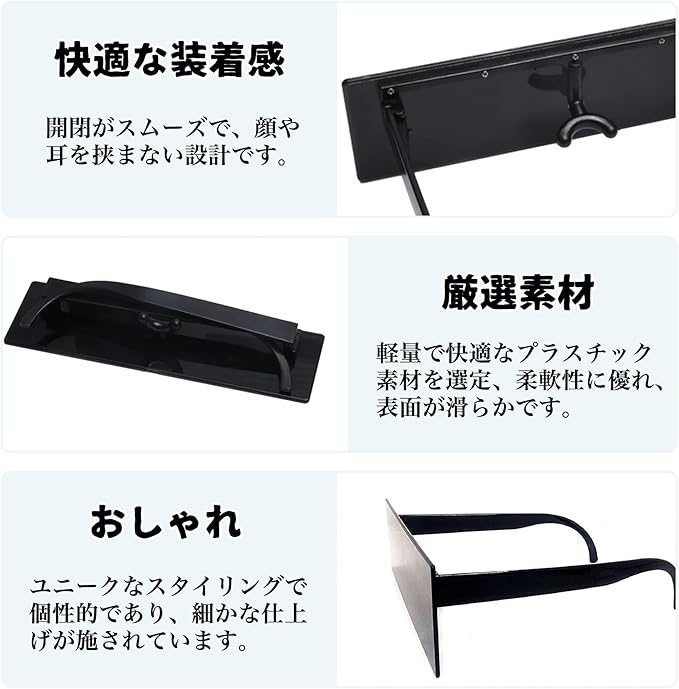 【役割自在】おもしるメガネ リアル適度な大きさのレンズデザインは、日常使いの実用性を保持しつつ、パーティーやコスプレなどの場面でも完璧なスパイアイテムとして活躍。あなたのスタイルを自由自在に、思いのままに切り替え可能にする。