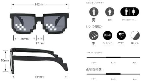 デザイン: 8ビットゲーム風のピクセル化されたデザインで、ユニークでレトロなスタイルを演出するパーティーサングラス