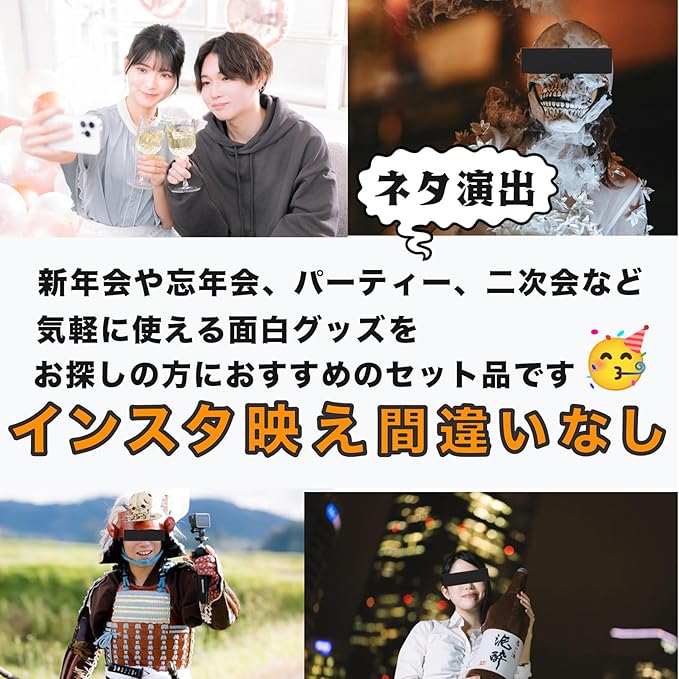 モザイクサングラスは、ハロウィン、パーティー、二次会、イベント、飲み会、余興、モノマネを演出する面白グッズ。目隠し線のモチーフで暴露、容疑者系ネタが盛り上がるかも。グループ、SNS映えを狙える。