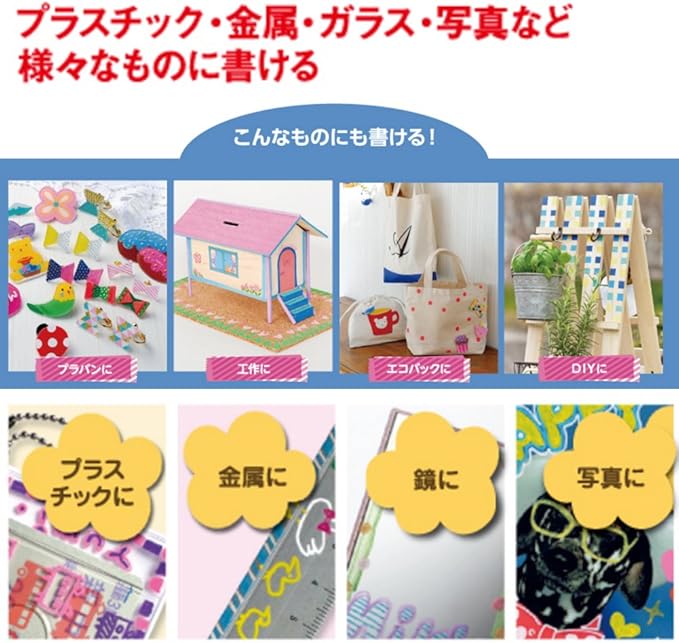 既存インクの色相よりも明度を高くした、淡い色調のポスカです。はっきりとした従来のインクと組み合わせて使うことで、より表現力が高まり、作品の完成度が増します。