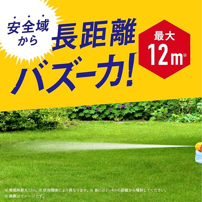 無風時約12m、巣には3mから4mの距離から噴射