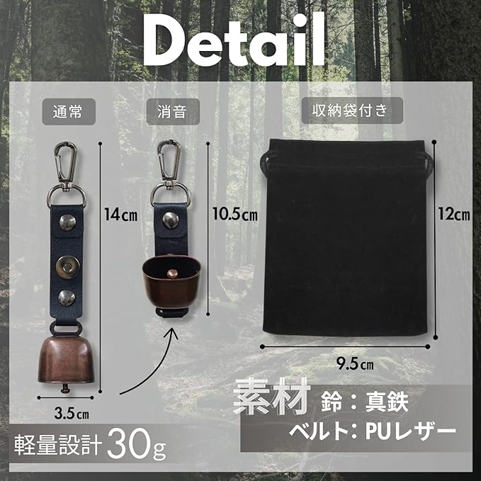 【消音機能付き】公共の場所や人の多い登山道など使用しない時に便利な消音機能付き。金属製の鈴をベルトのマグネットにつけるだけのワンタッチ。簡単に消音&解除ができます。