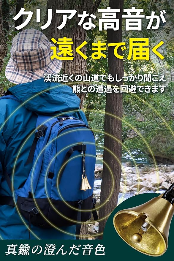 【真鍮製熊鈴の澄んだ音色と味わい】真鍮製ならではの澄んだ高音が、渓流や風の音にかき消されず、山中でもしっかりと響いて熊に存在を知らせます。アウトドアや登山などの熊対策として効果的な熊よけ鈴です。さらに、使い込むほどに味わいを増す真鍮の経年変化も魅力。機能性とともに長く愛用できる、風合いのある防災グッズとしてもおすすめです。