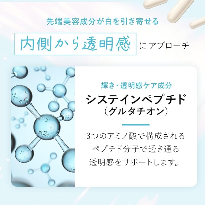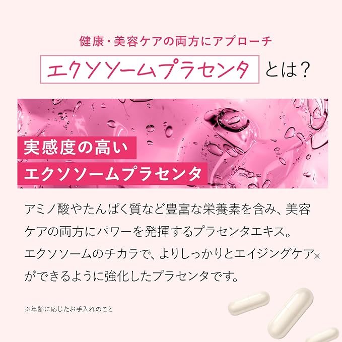 【独自のブースト成分】ブースト成分として、ハリのある毎日の元となる成分であるエクソソームプラセンタ、3つのアミノ酸で構成されるペプチド分子で透き通る透明感をサポートするシステインペプチド(グルタチオン含有酵母エキス)、ポリフェノールの一種で、美容成分としても注目されているレスベラトロール、ビタミンEの1000倍にもなるフレッシュ作用があるアスタキサンチンを独自の黄金比率で配合いたしました。