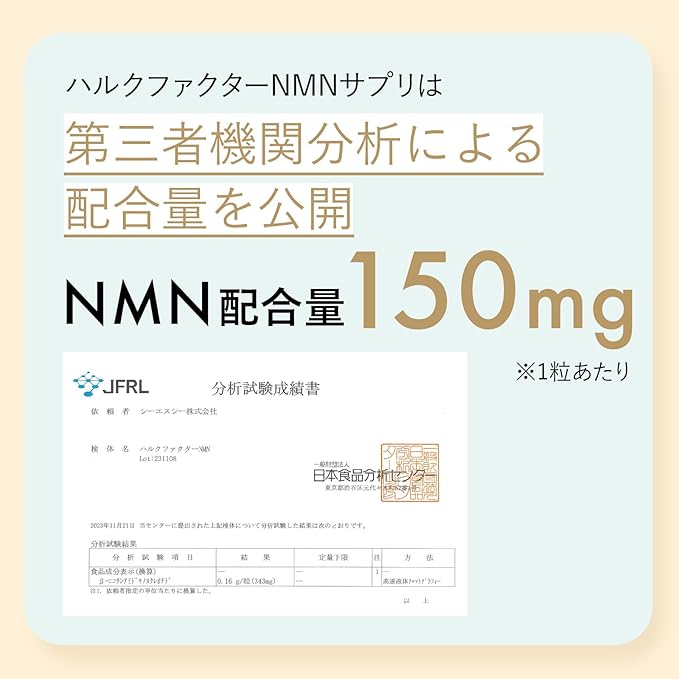 ✅【高配合を実現】 1袋62粒あたりNMN 9,300mgの高配合。 1日2粒あたりではNMN 300mg、栄養機能 ビオチン 50μg、ビタミンE 5mgを実現し、12種類のを配合しました。