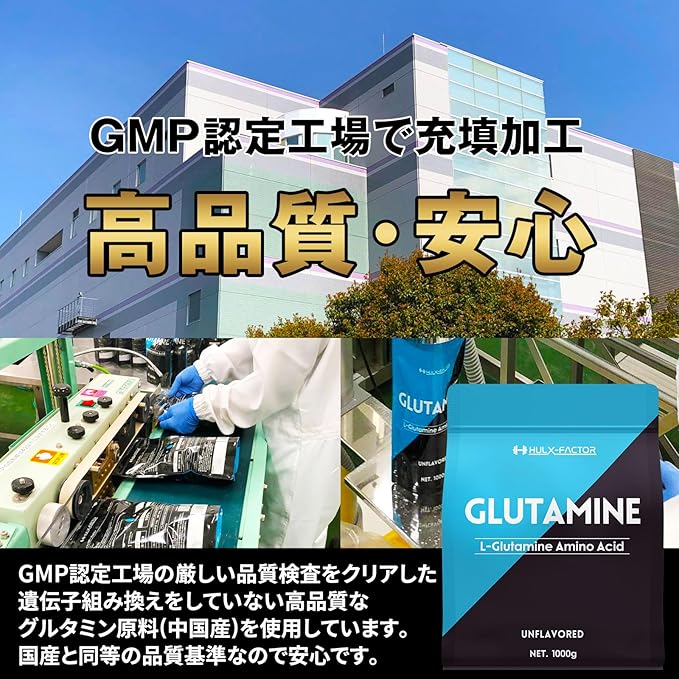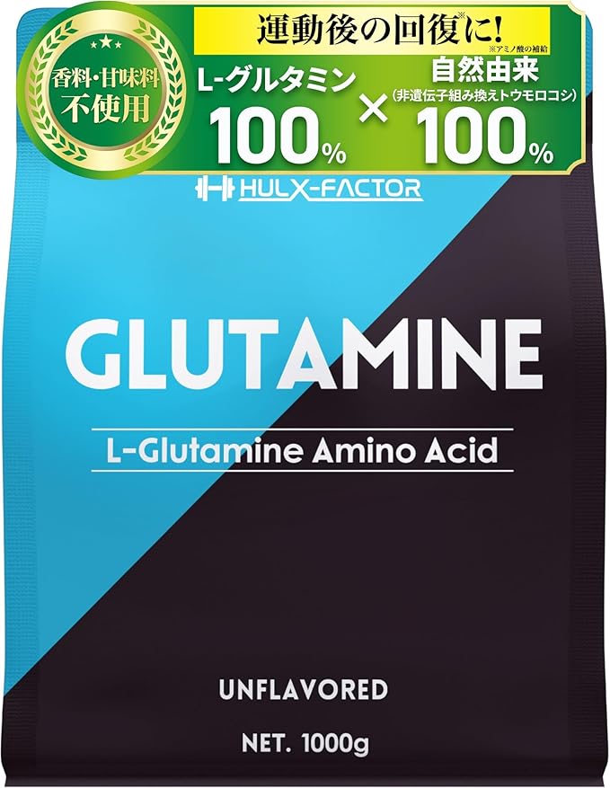 ✅【プロも納得!純度100%の高品質】L-グルタミン 1,000,000mg (1kg)配合!(1回あたり目安5,000mg)。グルタミンパウダーは本気でトレーニングに挑むあなたの日々のコンディションを整えてくれる重要な成分です。ハルクファクターは純度「100%」というプロフェッショナル品質のピュアフリーフォームパウダーを使用いています。